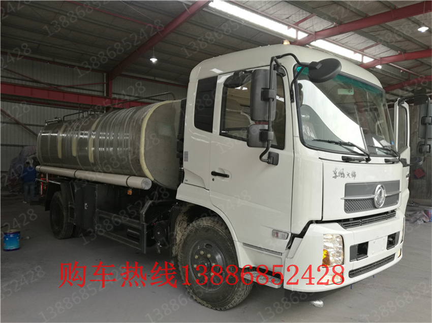 多利卡保溫熱水車_東風熱水運輸車價格_上裝配置:東風D9 12-15噸灑罐體采用機器壓板一次性成型技術,采用旋邊機,罐體包罐機工藝保了罐體制作的精度和美觀。烤漆工藝,防腐除銹,多層底漆、面漆噴涂。 功能前沖,灌溉、噴灑、道路養護,噴霧降塵、高炮噴射等,采用車載水泵,合理設計水路管道,氣控取力器,能力強;加大罐體設計,可以裝作12-15方水,提高了車輛的使用效率