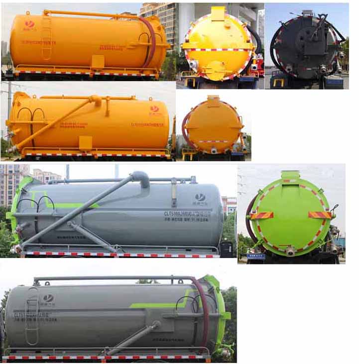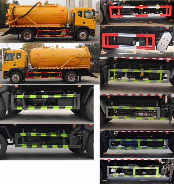 該車用于吸除水坑、下水道里污濁物;主要裝置有罐體及吸污裝置;隨底盤選裝駕駛室,選裝罐體兩側附件樣式及后部樣式;罐體總容量:11.16立方米,罐體有效容積:10.63立方米;罐體外形尺寸(含封頭總長×直徑)(mm):5400×1800,4800×1800;ABS系統生產廠家,型號 :焦作博瑞克控制技術有限公司,J ABS;襄陽東風隆誠機械有限責任公司,ABS/ASR-24V-4S/4M.側、后防護材料均為:Q235碳鋼,連接方式均為:螺栓連接,后部防護截面尺寸(mm):120×50,后部防護離地高度(mm):450.卸料方式:舉升后卸式。采用4500mm,3950mm軸距。隨底盤選裝燃油箱,電瓶,尿素罐,儲氣筒左右安裝位置。選裝限速裝置,限速89.