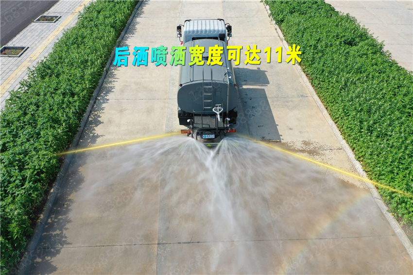 罐體尾部采用大平臺,可搭載30米車載式風送噴霧機組,具有功力強、射程遠、穿透力強、霧粒附著力強、覆蓋范圍廣、可以實現精量噴霧等特點,適合風沙抑塵、工地降塵,專門用于城市開發區建設工地車站儲煤場、洗煤廠、焦化廠、鐵礦、鋼廠、港口等的揚塵風沙控制;在城市遭遇霧霾天氣、空氣質量PM2.5嚴重超標時,可隨意選定一個區域進行液霧降塵、分解淡化空氣中的顆粒濃度、將飄浮在空氣中的污染顆粒物、塵埃等迅速逼降地面,達到治理凈化空氣的明顯良好效果。