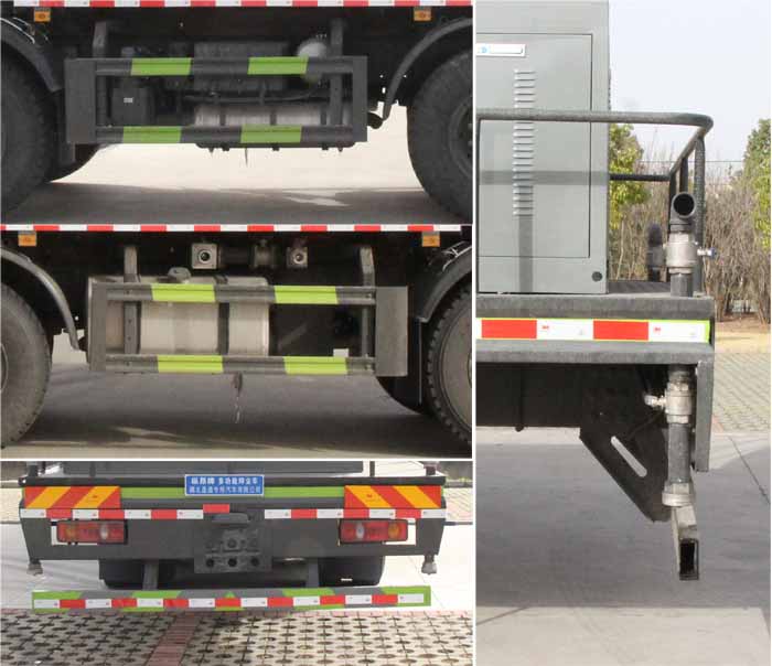 該車用途為抑塵降霾.主要裝置為罐體及噴霧裝置;罐體總?cè)萘?/span>:17.15立方米;罐體有效容積:16.33立方米;罐體外形尺寸(×長軸×短軸)(mm):5500×2480×1750.側(cè)、后防護材料均為:Q235碳鋼,連接方式均為:螺栓連接,后部防護截面尺寸(mm):120×50,后部防護離地高度(mm):490.ABS的型號及生產(chǎn)廠家:3631010-C2000/東科克諾爾商用車制動系統(tǒng)(十堰)有限公司,J ABS/焦作博瑞克控制技術(shù)有限公司.隨底盤選裝駕駛室,選裝噴霧裝置樣式,選裝擋泥板樣式.僅采用軸距(mm):1850+3200+1350改裝,整車長度為12000mm,后伸為850mm.