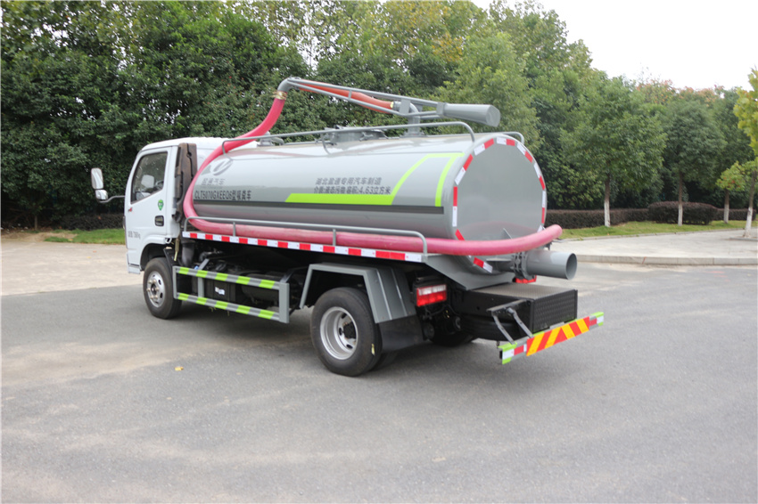 主要專用裝置:罐體及吸糞裝置,主要用于抽排運污水、糞便、泥漿等液態污物;罐體總容量4.63立方米,罐體有效容積4.41立方米,罐體外形尺寸(長×長軸×短軸)(mm):3500×1650×1200;ABS型號及生產廠家:3550D-1010C2000/東風福利企業公司;側/后防護材料Q235碳鋼,連接方式均為螺栓連接,后防護截面尺寸(寬×高)(mm)50×120,后部防護離地高度(mm):420.僅采用底盤3300mm軸距改裝.選裝后部出口樣式和側面樣式,隨底盤選裝水箱、空濾尿素罐、電瓶框等位置布局. |