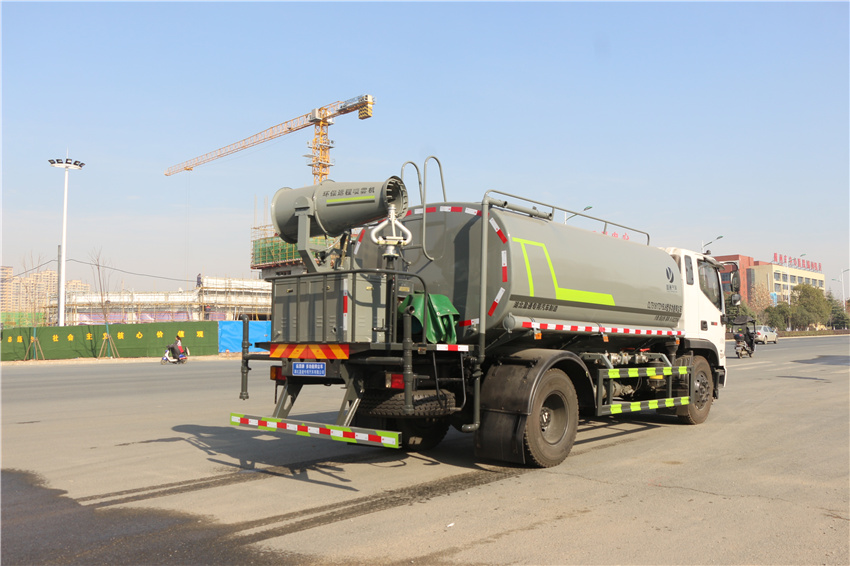 該車用途為抑塵降霾.主要裝置為罐體及噴霧裝置;罐體有效容積:9.8立方米;罐體外形尺寸(×長軸×短軸)(mm):4000×2300×1540;側(cè)、后防護材料均為:Q235碳鋼,連接方式均為:螺栓連接,后部防護截面尺寸(mm):120×50,后部防護離地高度(mm):460;ABS型號為CM4XL-4S/4M,生產(chǎn)廠家為廣州瑞立科密汽車電子股份有限公司.隨底盤選裝駕駛室,選裝噴霧裝置樣式。