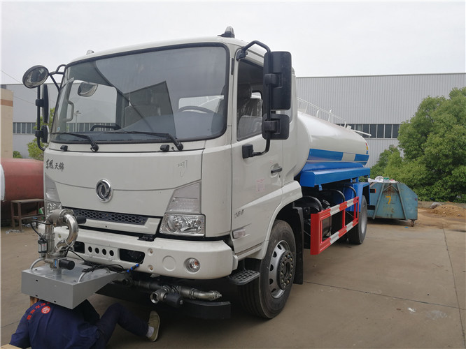 灑水車前裝有鴨嘴形噴嘴或圓錐形沖嘴,后面裝有圓柱形灑水噴嘴或蓮蓬頭噴嘴,后部有工作平臺,裝配有水炮。后還可裝8個(gè)噴嘴。