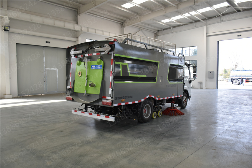 東風福瑞卡洗掃車_國六5.5方洗掃車_物業小區洗掃車_藍牌柴油清掃車,該車主要作用于路面的清掃作業;專用裝置為清掃裝置、垃圾箱。ABS型號/廠家:ABS/ASR-12V-4S/4M/襄陽東風隆誠機械有限責任公司;側防護裝置為專用裝置代替,后防護材料均為:Q235碳鋼,連接方式為:螺栓連接,后部防護截面尺寸(mm):120×50,后部防護離地高度(mm):370.隨底盤選裝駕駛室。選裝燃油箱,電瓶,尿素罐,儲氣筒左右安裝位置。 |