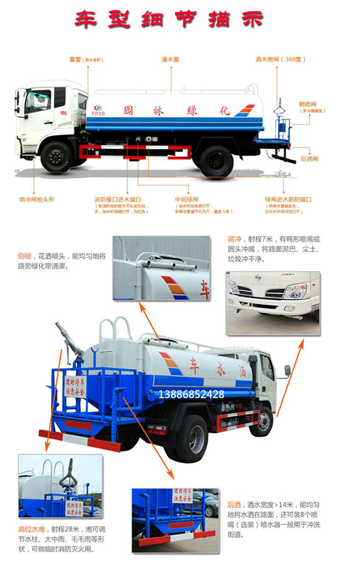 我公司專業(yè)生產(chǎn)的水車罐體容積為有“3立方、5立方、6立方、8立方、10立方、13立方、15立方、25立方”等,也可以為您定做非常規(guī)灑水車及水罐。我公司是全國最大的專用汽車廠家,占全國市場份額80%,灑水車是我們廠家主打產(chǎn)品,深受客戶好評!質(zhì)量過硬、售后保證、出廠價(jià)格!歡迎廣大客戶前來訂購!