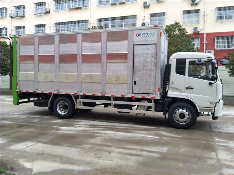 畜禽運輸車是我公司在借鑒國內外產品的基礎上,結合用戶實際需求新研發的一款運輸仔豬、生豬、雞苗等畜禽的專用功能較強的運輸車輛,是我公司傾力打造的一款專門面向活禽、牲畜運輸市場的一款高端運輸車,該款運輸車旨在增強活禽、牲畜在運輸過程中的舒適度、減少死亡率,提高運輸效率,該車配備設施完善、自動化程度高。廂式畜禽運輸車可用于成品豬、生豬、豬仔、雞苗跨省運輸,全程無泄漏,有糞液收集系統箱體采用全鋁合金型材制作,質量輕、抗腐蝕性強。箱體中層安裝保溫隔板,頂部采用玻璃鋼,有效避免高溫傳導,控制箱體內部溫度。車廂內部采用全液壓可調整分層結構,二層、三層、四層16欄(根據需求選擇)飲水系統,側推拉通風滑窗,帶電子排風扇,視頻監控,溫度顯示監控,中間有隔欄,每層約承重300頭仔豬的重量。車廂后部選裝垂直液壓升降尾板,更實用!