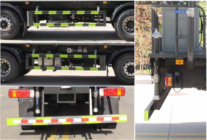 該車主要用于城鄉(xiāng)園林綠化噴灑作業(yè);主要裝置為水罐及噴灑裝置;運(yùn)輸介質(zhì):丙酮水溶液,介質(zhì)密度:950千克/立方米.罐體總?cè)萘?/span>:16.59立方米;罐體有效容積:15.8立方米;罐體外形尺寸(長(zhǎng)×長(zhǎng)軸×短軸)(mm):6800×2400×1450.側(cè)、后防護(hù)材料均為:Q235碳鋼,連接方式均為:螺栓連接,后部防護(hù)截面尺寸(mm):120×50,后部防護(hù)離地高度(mm):490;ABS系統(tǒng)型號(hào)/生產(chǎn)企業(yè):CM4XL-4S/4M,廣州瑞立科密汽車電子股份有限公司.該車隨底盤安裝限速裝置,限速89km/h.選裝前部不帶電子水炮,該狀態(tài)下車長(zhǎng)為10150mm;當(dāng)前部安裝電子水炮時(shí),車長(zhǎng)為10650mm,車輛前伸500mm.選裝前部電子水炮裝置樣式,選裝車輛前部鴨嘴裝置.