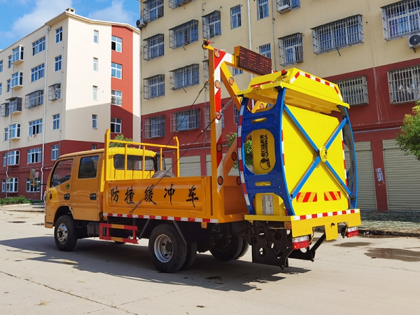 小多利卡D6防撞緩沖車(chē)采用東風(fēng)小多利卡底盤(pán)。防撞緩沖模塊升降采用液壓控制,過(guò)程平穩(wěn)、安全、機(jī)械化作業(yè)程度高,操作方便。防撞緩沖模塊整體引進(jìn)美國(guó)Energy Absorption Systems公司技術(shù)產(chǎn)品Alpha 70K TMA™防撞緩沖模塊。