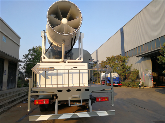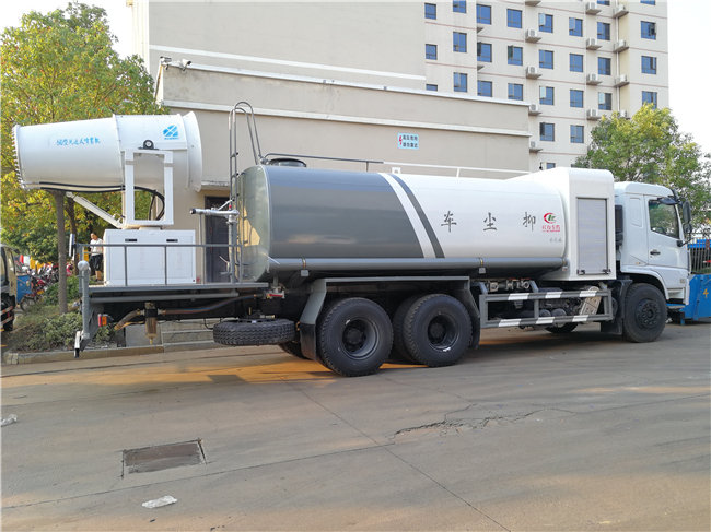 專用裝置為抑塵霧炮,用于城市抑塵.整車長/軸距/后懸對應關系為(mm):10630/4350+1350/3490;10630/4750+1350/3090;11880/5400+1350/3690;11880/5700+1350/3390;11880/5900+1350/3190;防護材料:Q235A碳鋼,連接方式:左右側面采用焊接連接,后下部防護采用螺栓連接,后部防護斷面尺寸(mm):120×50,后部防護離地高度(mm):500.ABS型號/生成廠家:3631010-C2000/東科克諾爾商用車制動系統(十堰)有限公司;選裝霧炮型號:WF-60/WF-80/WF-100所對應的整備質量分別為:12300kg/13250kg/14000kg。隨底盤選裝駕駛室。選裝外形圖片。