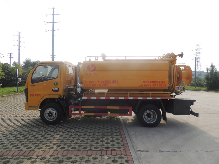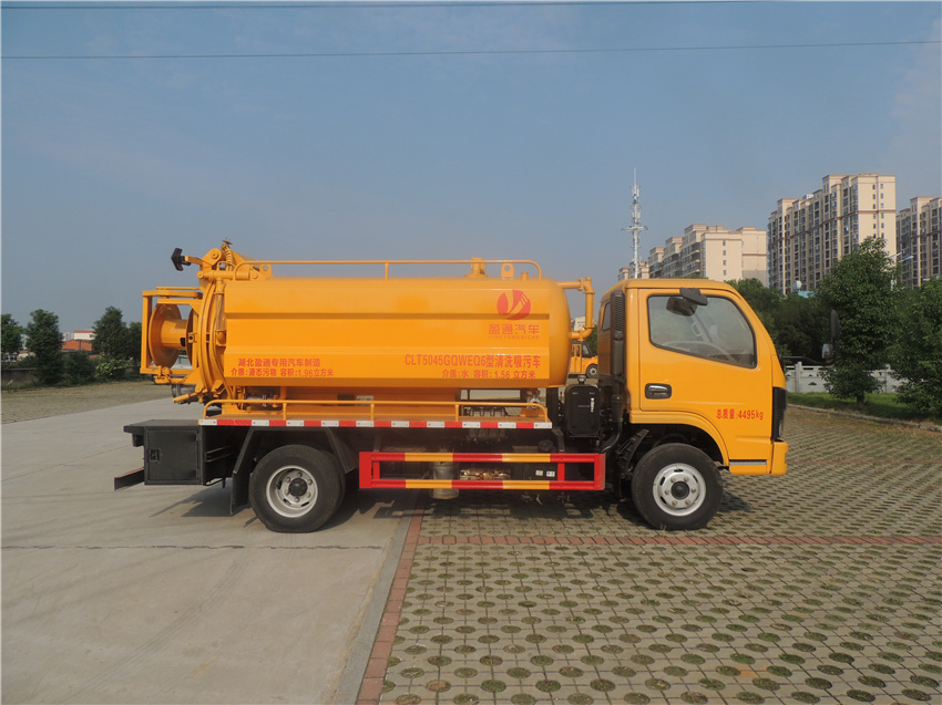 東風5方清洗吸污車,藍牌管道疏通車,抽排運污車,糞便液態吸糞車,泥漿液態轉運車,該車用于下水道排污及疏通,專用裝置:罐體及清洗吸污裝置;罐體外形尺寸(直段長×直徑)(mm):3100×1300(前部1370mm為清水罐,后部1730mm為污水罐);污水罐總容量:1.96立方米,污水罐有效容積:1.86立方米,介質:液態污物,密度800千克/立方米;清水罐總容量:1.56立方米,清水罐有效容積:1.49立方米,介質:水,密度1000千克/立方米,清水罐和污水罐為獨立罐體,清洗功能時用清水罐,吸污功能時用污水罐,污水罐和清水罐不可同時滿載;ABS型號/廠家:ABS/ASR-12V-4S/4M/襄陽東風隆誠機械有限責任公司;卸料方式為舉升后卸式;側、后防護材料均為:Q235碳鋼,連接方式均為:螺栓連接,后部防護截面尺寸(mm):120×50,后部防護離地高度(mm):370.隨底盤選裝駕駛室,選裝底盤附件安裝位置.選裝燃油箱,電瓶,尿素罐,儲氣筒左右安裝位置 |